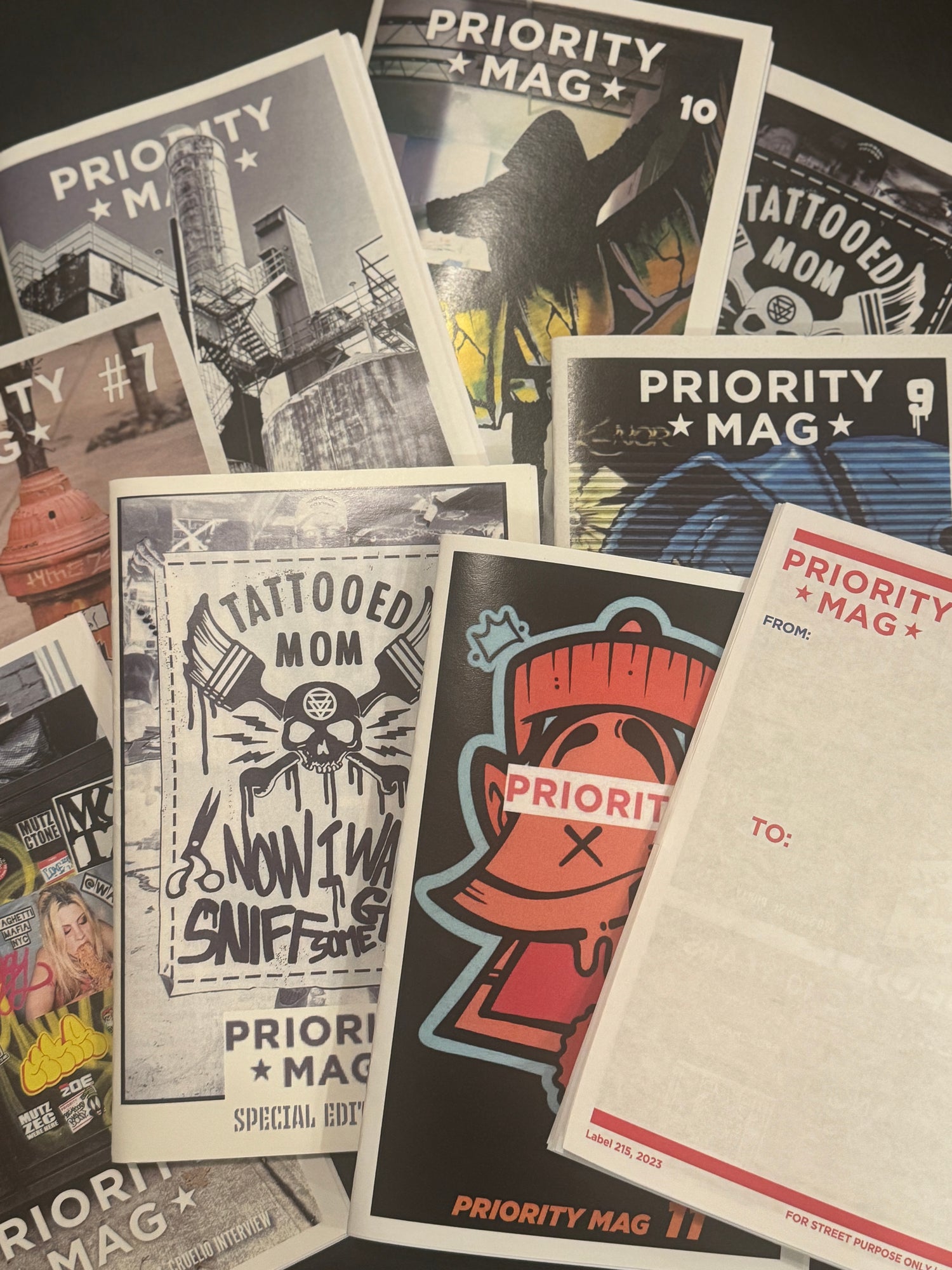 At Priority Mag our mission is to empower and support street artists by creating a platform for their voices to be heard. Priority Mag, a zine that showcases street art via our network of photographers and Artists interviews from Priority Mag correspondents. We distribute it to our subscribers as a way to raise awareness and build community.
